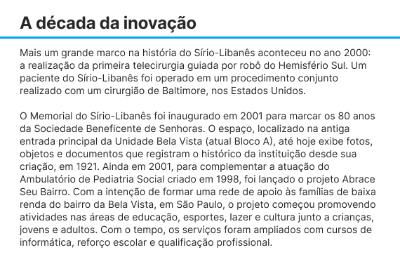 Por meio do livro de 100 anos é possível reviver uma história pioneira, iniciada em 1921 pelas mãos de mulheres determinadas e à frente de seu tempo. Grandes líderes que continuam nos inspirando a preservar os valores humanísticos e a eternizar nossa marca. A publicação reafirma nosso compromisso com a solidariedade, a excelência e a busca por resultados à altura das expectativas que pairam sobre nossa instituição. Convidamos você a conhecer as curiosidades, inovações, conquistas e todos os grandes marcos do nosso centenário. Boa leitura!