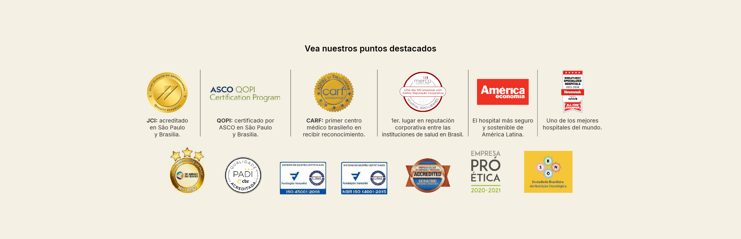 El Sírio-Libanês sigue los más rígidos estándares de calidad, lo cual es reconocido por las principales entidades certificadoras de Brasil y del mundo. Contamos con más de 14 certificaciones y reconocimientos Asistenciales y de Gestión, y con 6 certificaciones y reconocimientos Medioambientales y de Gobernanza.