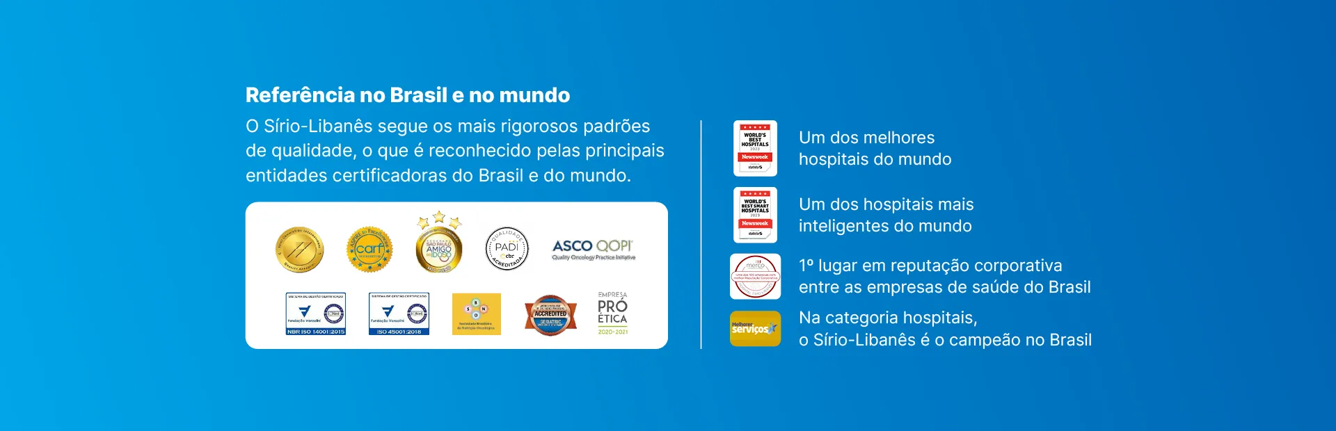 Contamos não só com as décadas de experiência, reconhecimento e acreditações nacionais e internacionais, mas vamos além. Nos diferenciamos por nossos profissionais especializados em áreas específicas, para proporcionar o melhor cuidado aos nossos pacientes.