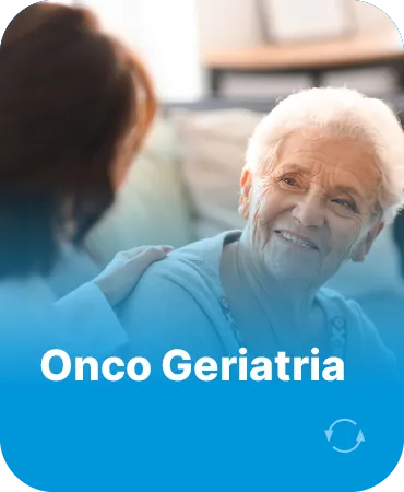 Cuidado integrado e multidisciplinar de pacientes idosos com câncer, englobando etapas como rastreamento, diagnóstico, tratamento oncológico e suporte para necessidades específicas relacionadas à faixa etária.