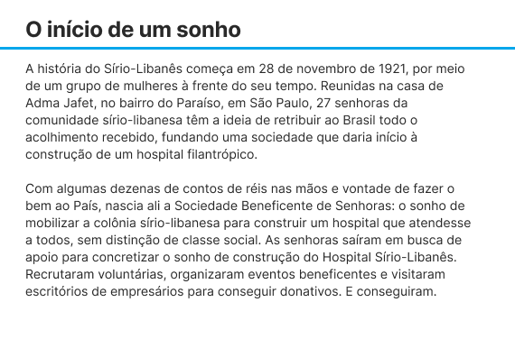 Por meio do livro de 100 anos é possível reviver uma história pioneira, iniciada em 1921 pelas mãos de mulheres determinadas e à frente de seu tempo. Grandes líderes que continuam nos inspirando a preservar os valores humanísticos e a eternizar nossa marca. A publicação reafirma nosso compromisso com a solidariedade, a excelência e a busca por resultados à altura das expectativas que pairam sobre nossa instituição. Convidamos você a conhecer as curiosidades, inovações, conquistas e todos os grandes marcos do nosso centenário. Boa leitura!